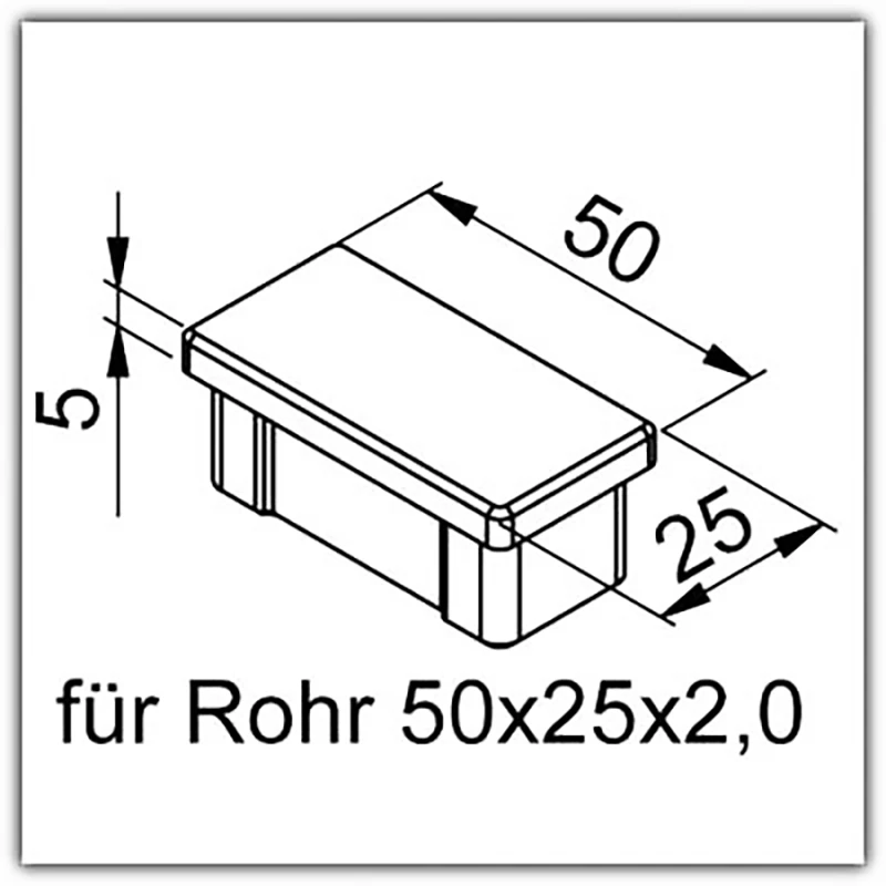 Endkappe für Rohr 50 x 25 x 2,0mm