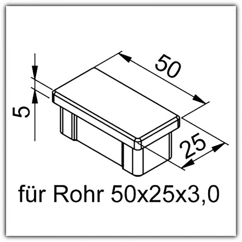 Endkappe für Rohr 50 x 25 x 3,0mm