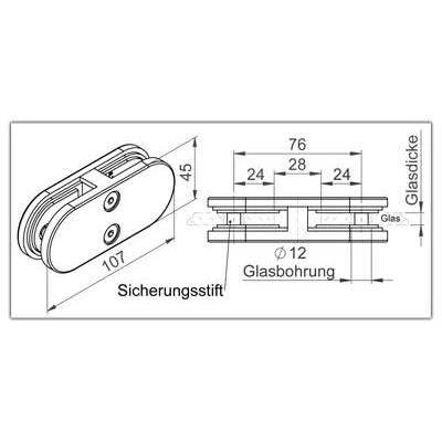 Glasklemme C / Anschluss beidseitig / Glasdicke 6mm