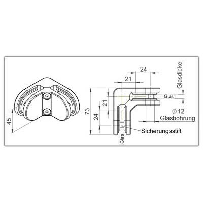 Glasklemme C / Anschluss 90° / Glasdicke 8,76mm