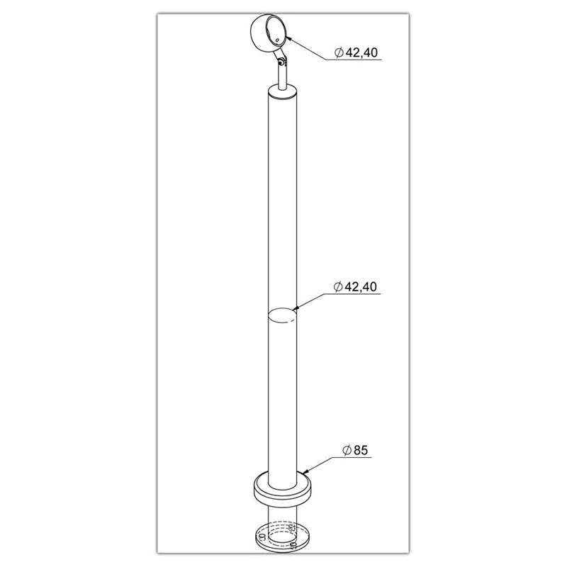 - Geländerpfosten ø42,4 x 3,0mm im montagefertigen Zustand