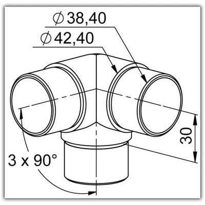 - Handlauf-Winkelstück für Rohr ø 42,4 x 2,0mm mit 3 Anschlüssen