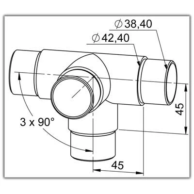 - Handlauf-Winkelstück für Rohr ø 42,4 x 2,0mm, mit 4 Anschlüssen