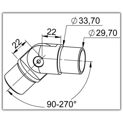 - zum Verbinden von Handläufen ø33,7 x 2,0mm über Eck, Schwenkbereich 90°-270°