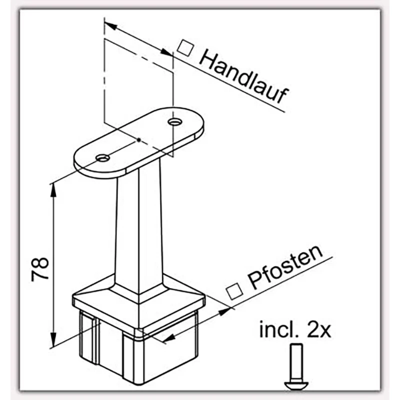 - Handlaufträger starr Modell A für flachen Handlauf für Pfosten 40 x 40 x 2,0mm