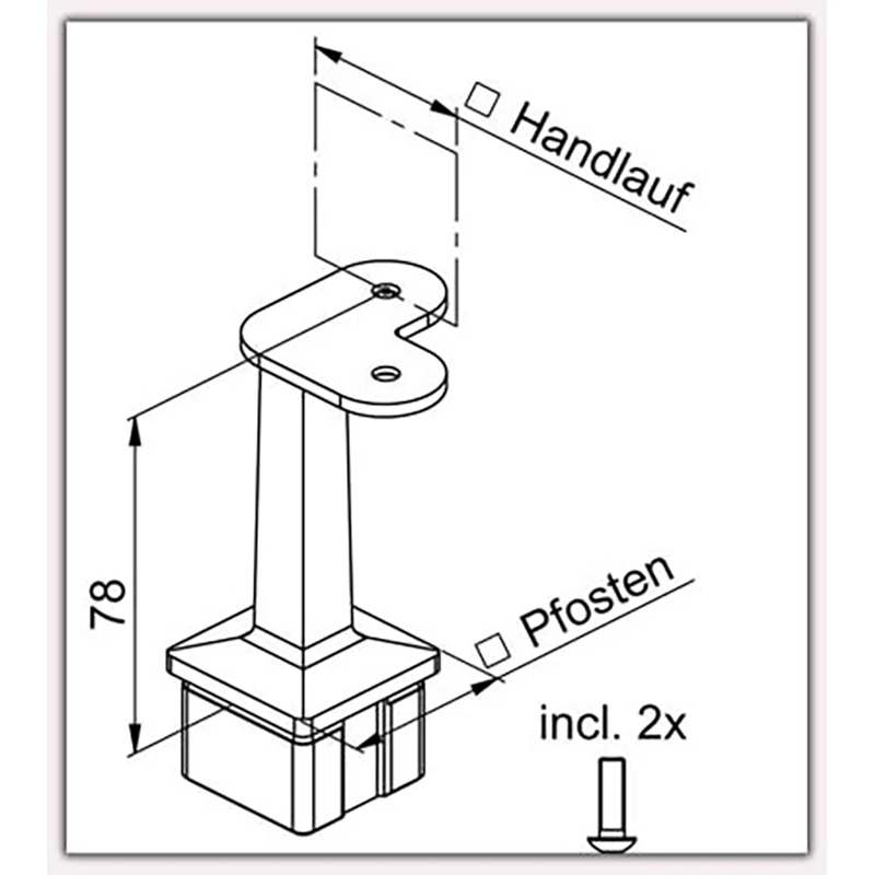 - Handlaufträger Modell C mit Winkelstück für flachen Handlauf für Pfosten 40 x 40 x 2,0mm