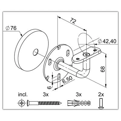 - Wandhandlaufträger für Handlauf ø42,4mm