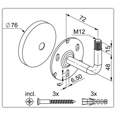 - Wandhandlaufträger für Holzhandläufe mit selbstklemmender Rosette