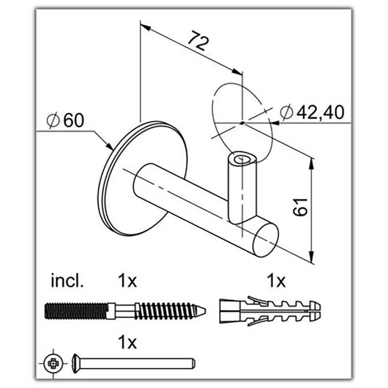 - Wandhandlaufträger für Handlauf ø 42,4mm
