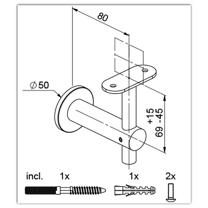 - Wandhandlaufträger für Handlauf ø 42,4mm