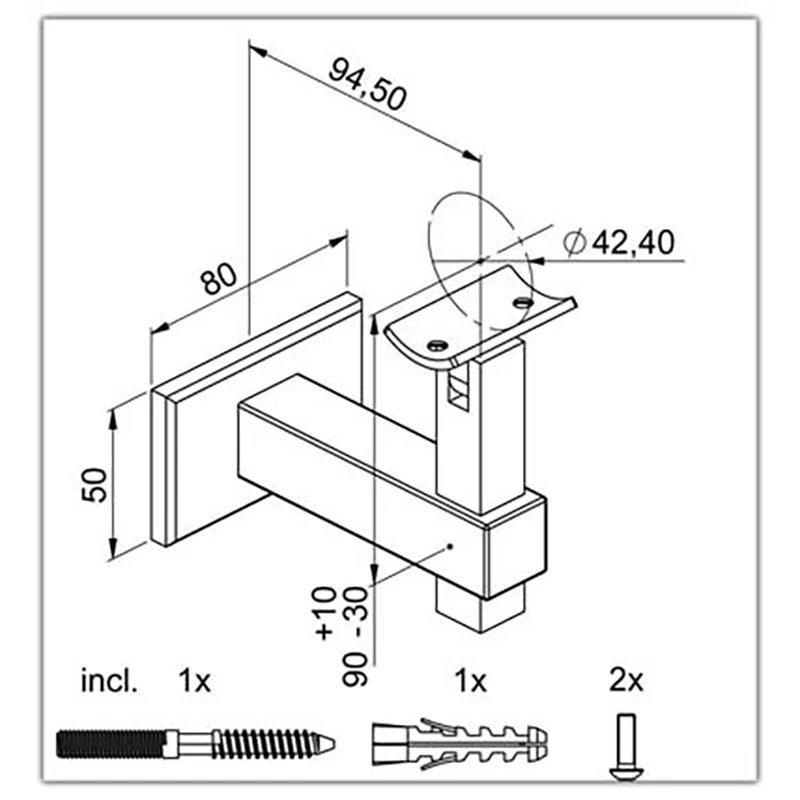 - Wandhandlaufträger für Handlauf ø42,4mm Quattro