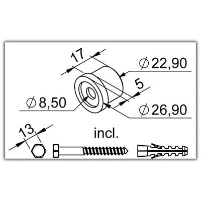 - zum Anschließen eines Handlaufs ø26,9 x 2,0mm an die Wand