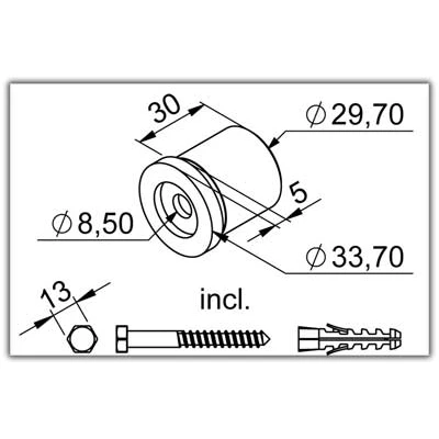 - zum Anschließen eines Handlaufs ø33,7 x 2,0mm an die Wand