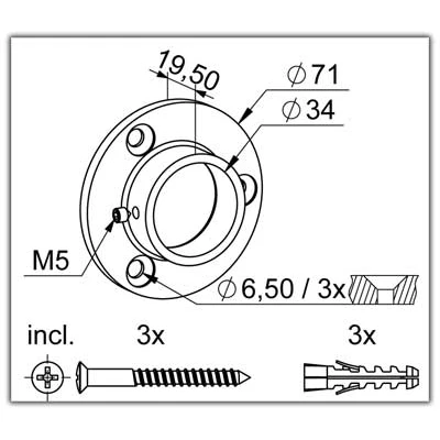 - zum Anschließen eines Rohres ø33,7 x 2,0mm an die Wand