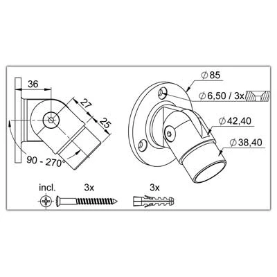 - zum Anschließen eines Handlaufs ø42,4 x 2,0mm an die Wand
