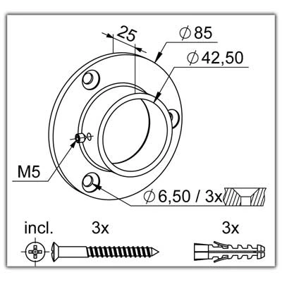 - zum Anschließen eines Handlaufs ø42,4mm an die Wand