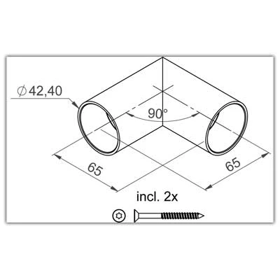 - Edelstahl-Handlauf-Bogen eckig für Holzhandläufe ø42,4mm