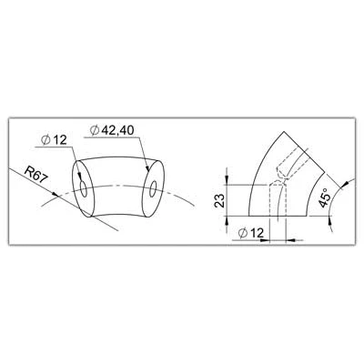 - Radius mitte Bogen 67mm