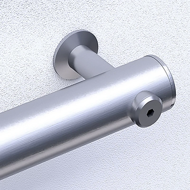 - Anschluss eines Rohres an die Wand mit Distanzhülse und Wandscheibe