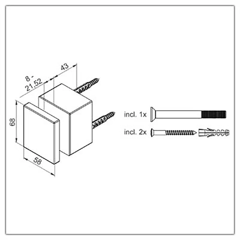 - Glasbefestigung 68 x 58mm