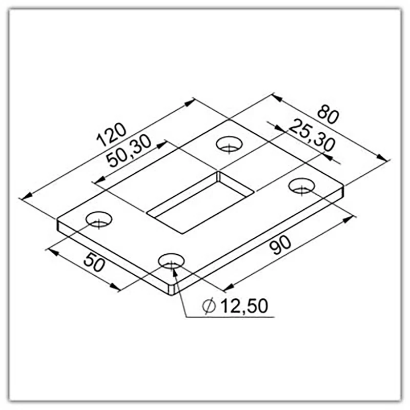 Platte 120 x 80 x 6mm Mittelbohrung 50x25mm / roh