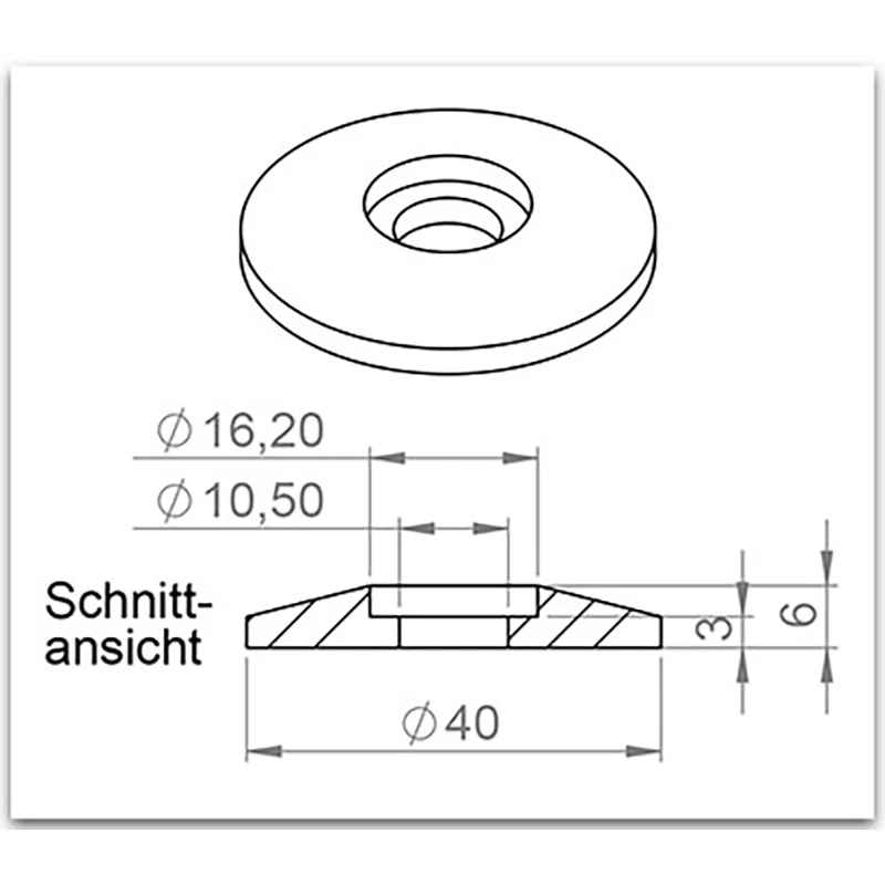 Scheibe ø 40mm mit Sacklochbohrung ø 16,1mm