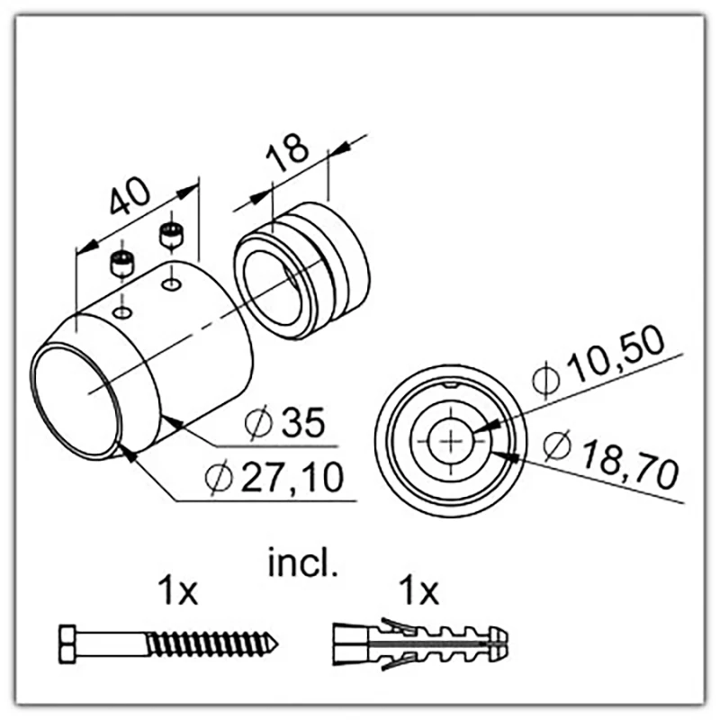 - zum Anschließen eines Handlaufs ø26,9 x 2,0mm an die Wand