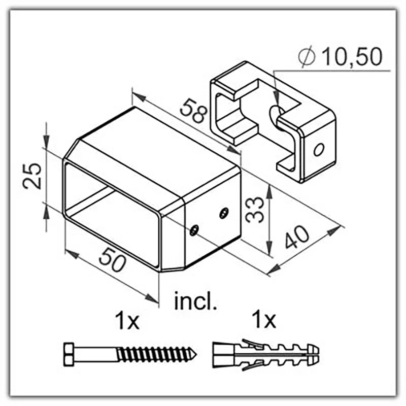 - zum Anschließen eines Handlaufs 50 x 25mm an die Wand