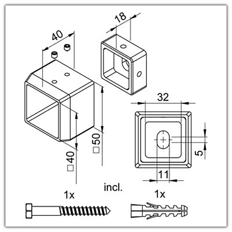 - zum Anschließen eines Handlaufs 40x40mm an die Wand